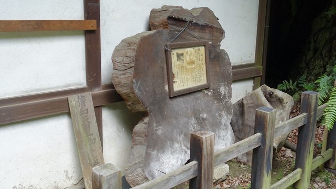 境内には平安時代の清和天皇の手植えだったという御神木の桧があったのですが、昭和9年(1934年)の室戸台風で損傷し、翌年に枯れてしまいました。地上3mのところで七股に分れていたそうです。また、周辺にも樹齢200年の桧が数十本もあったそうですが、これらも台風により倒壊してしまったそうです。