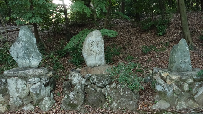 伏見稲荷大社にも「薬力社」がありますが、こちらは「薬力大明神」です。上の画像で、鳥居の右の柱の後方に、石柱が数本見えますが、「業平塚」です。詳しく見たかったんですが、実は、もう足元がだいぶんと暗くなっていて、そろそろ帰らないといけない時間です。