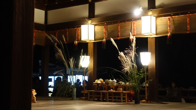 舞殿には、すすきが飾られ、月見団子が供えられています。
