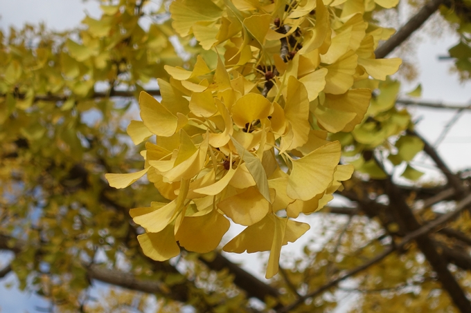 もみじの「赤」ばかりが紅葉のように思われがちですが、イチョウの「黄」もとてもきれいです。イチョウは「黄色」になる少し手前の「淡い黄緑色」が一番輝いて見えます。