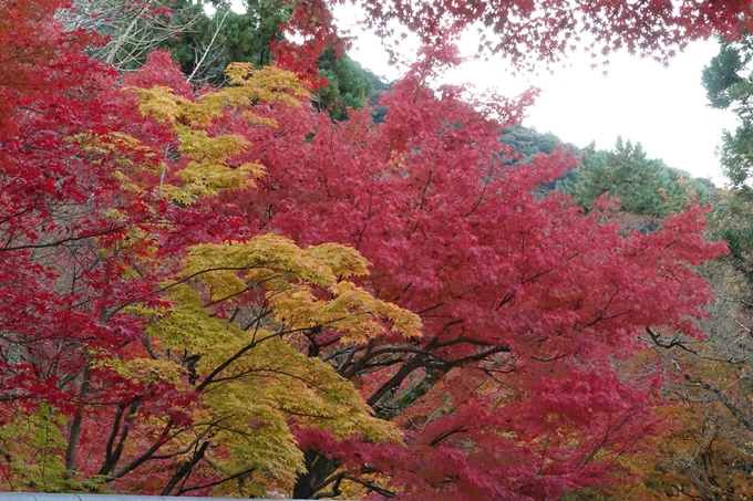 最初に紅葉していた、入り口の壁沿いのもみじは散っています。中の方のもみじはきれいに紅葉しているようですが、ここも「散り始め」となっています。