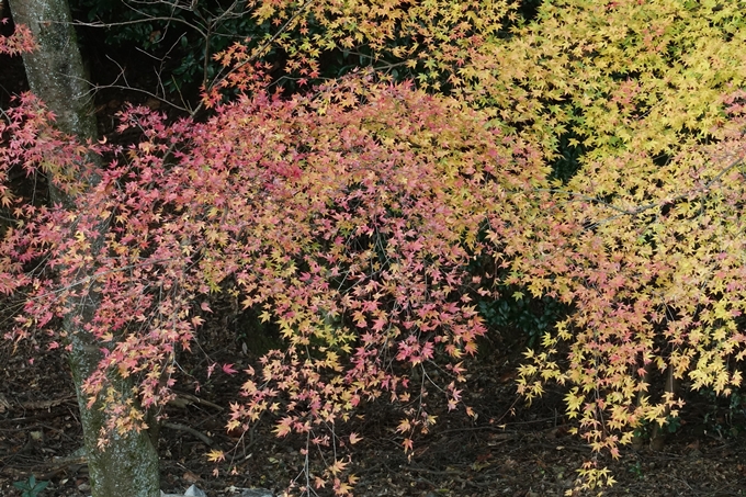 濃い赤から、朱色、オレンジ色、黄色、黄緑と、ほぼすべての紅葉が見られます。