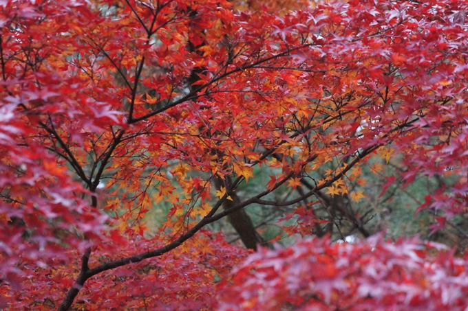 「真っ赤っか」ではなくて、「朱色」っぽい色の紅葉です。