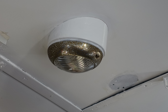 前照灯です。前照灯が明るかった記憶はありませんが、真ん中の「ワンマンカー」の字が灯りに浮き上がっていたのは印象に残っています。