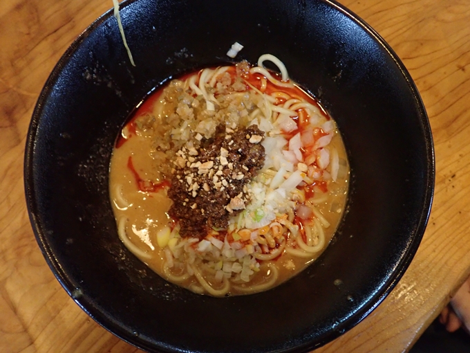 こっちは、「濃厚担担麺」です。結構スープがあります。ピリ辛感が少ないので、ラー油を少し足します。コクがあっていいですね。