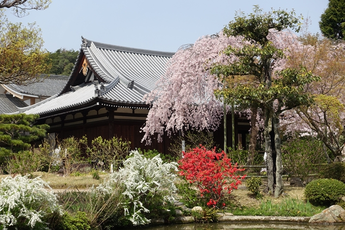 「西大路通り」を超えてまだまだ「一条通り」を西に進みます。「妙心寺」の北門が見えてくるので「妙心寺」の中を抜けます。妙心寺では「退蔵院」で桜の公開をしていますが、今日は妙心寺を後にして「法金剛院」に向かいます。