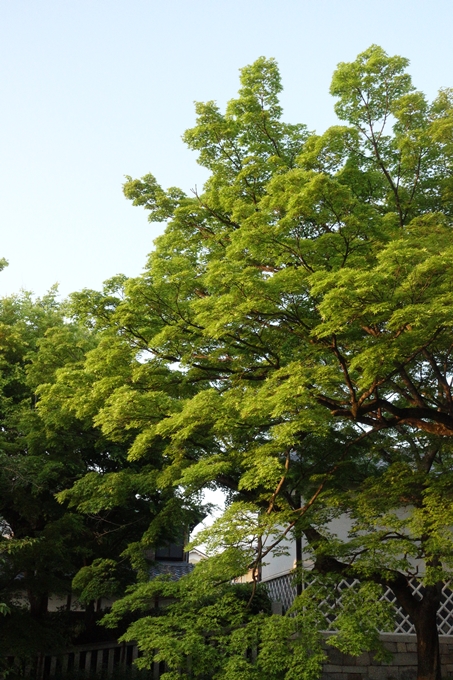 夕焼け時ですが鮮やかな新緑がとてもきれいです。例によって人がほとんどいません。