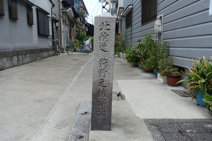 「此附近 狩野元信邸址」の石票です。ちょっと斜めになって立っています。