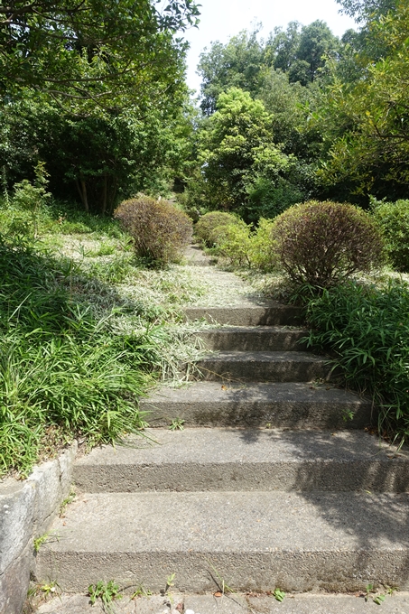 亀岡市立「つつじヶ丘小学校」の東側の道に「頼政塚」に通ずる参拝路があります。住宅街からこの階段を上がっていきます。周りには駐車場がないので、車で来られると少し離れたところにしかコインパーキングなどがありません。