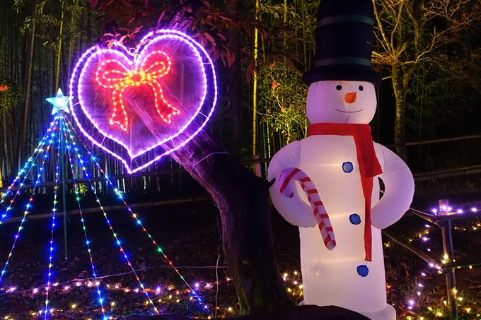 通常時は「ききょうの里」として公開されている場所なんですけど、今の時期は「丹波夢ナリエ」としてライトアップで公開しています。ききょうの時期にも一度来てみたいですね。入り口の木戸からちらりと見える青い光、そそられますね。期待感いっぱいですよ。