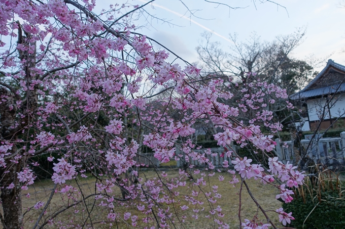 境内に入りましたよ。おお、右手に桜が見えます。「仁王門」は閉まっているので、西にある門から入りました。いつものごとく、誰もいません。貸切状態です。ま、この時間になったら、観光の人はホテルでひとっ風呂浴びてる時間ですね。