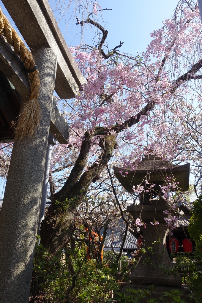 これ、これ。これですわ。境内の鳥居前の枝垂れ桜。これを撮るために来ました。