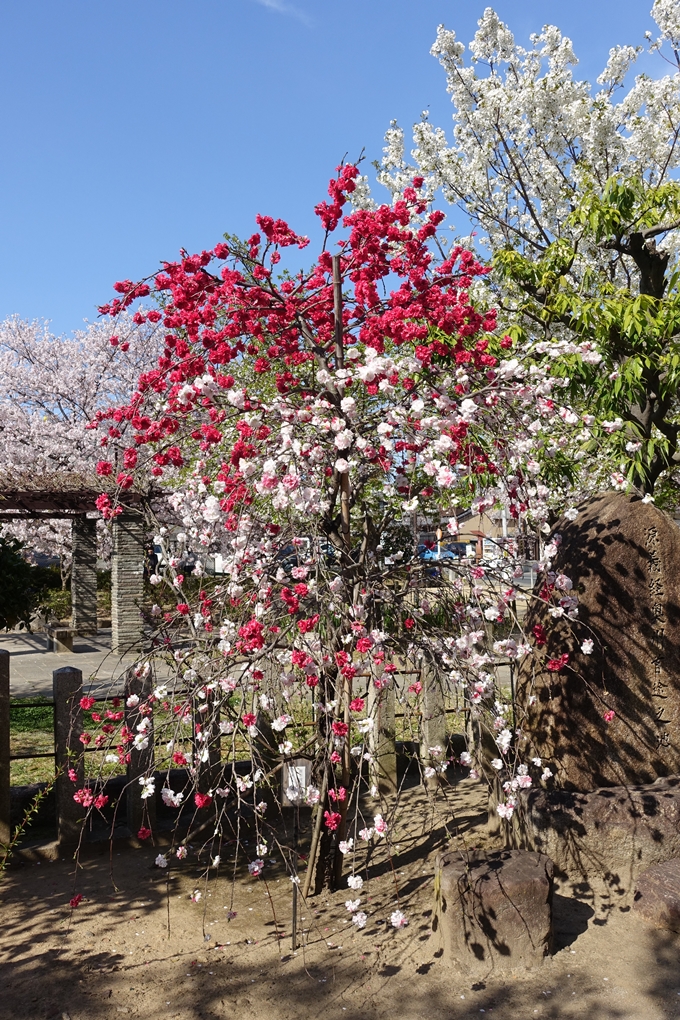 一本の桃の木に紅白の花が咲き分けるので、とっても縁起のいい感じです。