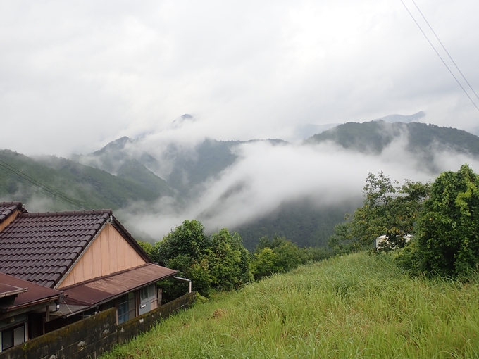 こんな天気ではありますが、これがほんとの「熊野古道」でしょう。山々を背景に雲がゆっくりと流れています。