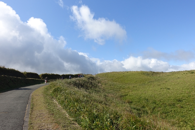 で、今度は怒涛の勢いで県道111号線の急坂を上っていくのですが、「草千里ヶ浜」は分厚い雲の中。100m先も見えないぐらいですよ。私は冬には濃い霧が良く出る亀岡市に住んでいるので、霧や雲の中の運転は全然平気なんですけど、せっかくの「草千里ヶ浜」の景色が見えないというのが、ひじょーに残念。