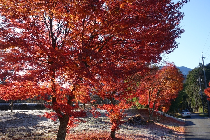 8時半には「神坂地区」の林道入口に着きました。上の画像のようにここから「神坂峠」の駐車場までは13㎞。30分程度で到着します。
