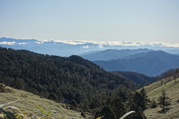 ほんとはもう少し場所を移動したかったのですが、登山道からは笹原に入ること禁止です。ロープが張られています。