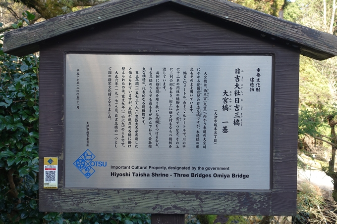日吉三橋の一つ「大宮橋」です。木造桁橋の形式がそのまま石造で再現されている橋で、先ほど石積みで紹介した「穴太衆」の作だそうです。重要文化財に指定されています。