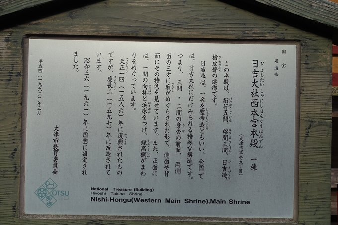 「官幣大社 日吉神社」の石柱です。全国3800余りの日吉・日枝・山王神社の総本宮です。