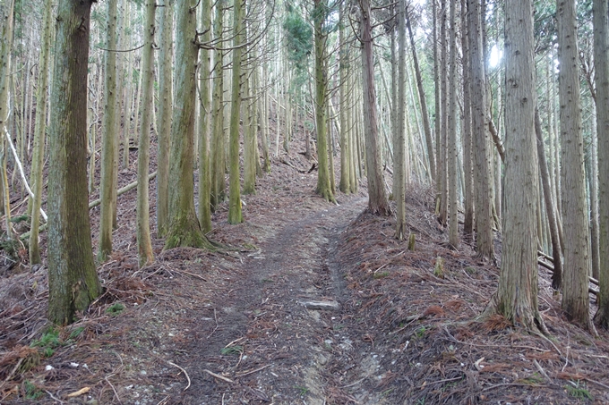 今から歩く道に合流している林道。林業の人々はこんな坂道を上ったり下ったりしてるんですね。