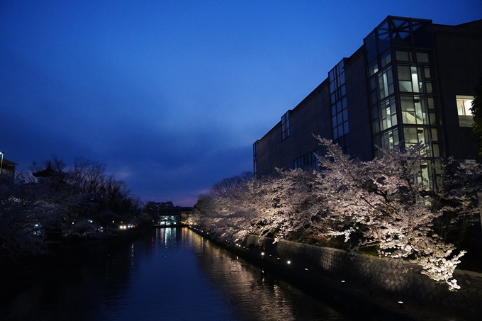疏水の北側に植わっている桜です。ライトに照らされて輝いています。