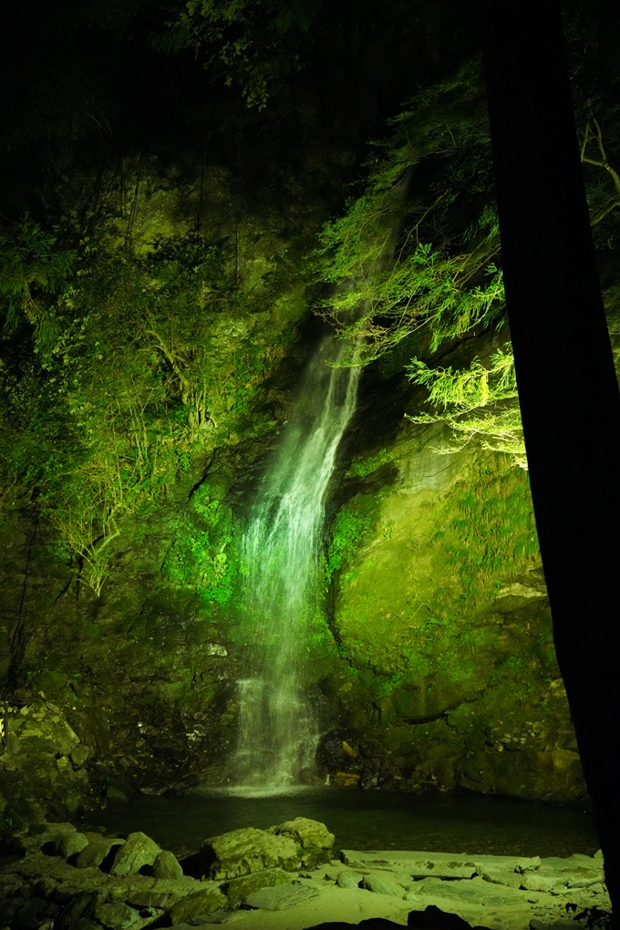 「琵琶の滝」もライトアップされているので行ってみましょう。