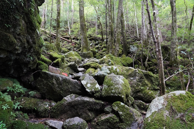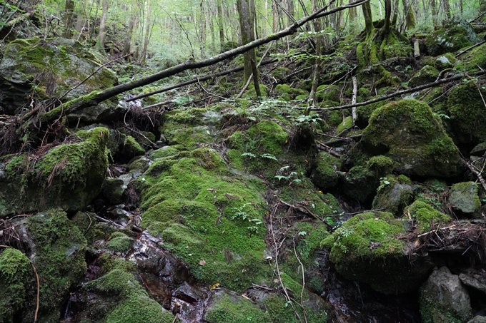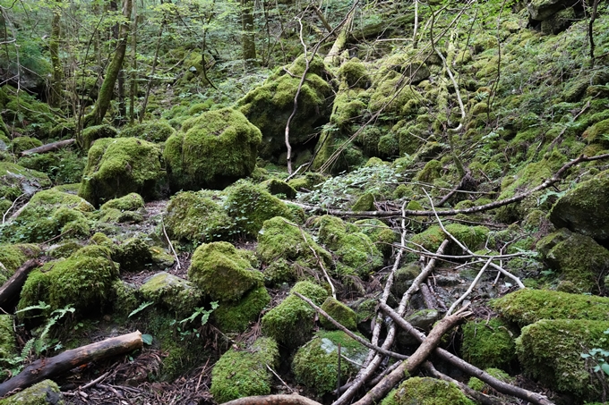 岩がゴロゴロの急斜面。でも苔に覆われているからか見ていても安心感があります。
