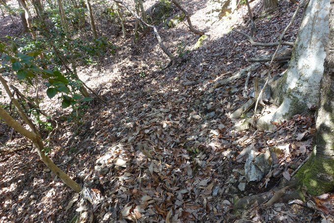 一応、山道ですかね。斜面に木の生えていないところが細々と続いています。でもあくまで斜面ですよ。