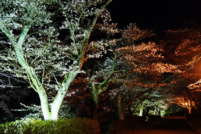 日中、日の光に輝く桜もいいんですけど、LEDライトに照らされて怪しく光る桜もいいものですよ。
