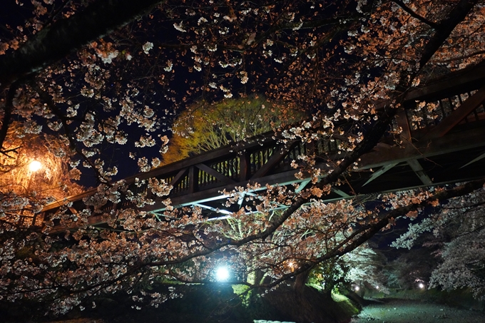 こうなるといてもたってもいられなくなって「七谷川」を目指しました。公式には3月27日(土)からがライトアップなんですけども、日頃から点いている街路灯があるので真っ暗ということはありません。ライトアップが始まって人がわんさか訪れる前に、ちょっと覗きに行ってみましょう。