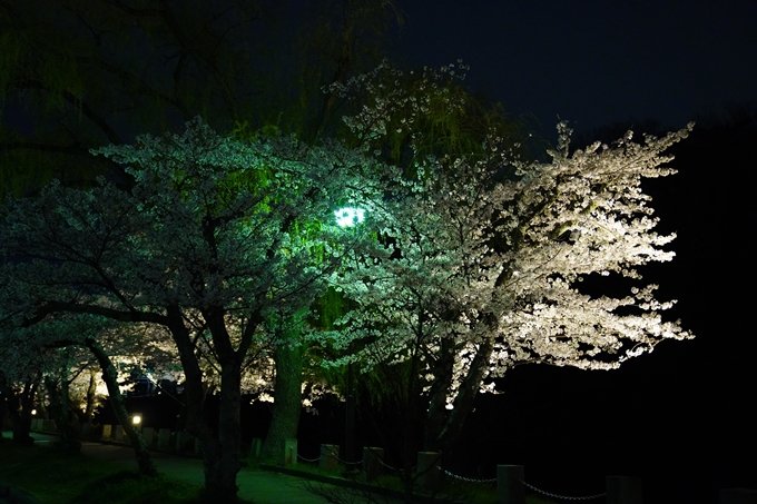 昼間の様子も紹介しましたが、夜になると、また雰囲気が違います。桜が咲くころになると、夜の気温も少し高くなってくるので過ごしやすいです。真冬のライトアップはさすがにつらいですけど、3月末ともなれば指先がかじかむこともありません。