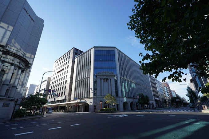 四条烏丸の交差点まで来ましたよ。今日も暑くなりそうですね。たぶん今日が梅雨明けになると思われます。