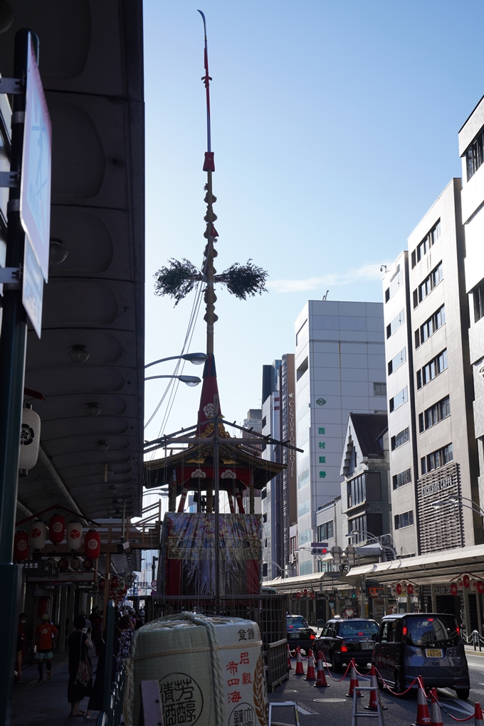 鉾が建っている間、四条烏丸の北西にあるバス停はちょうど「函谷鉾」が陣取ってますのでバスが停まれません。一つ手前の「西洞院」か「高倉」で降りてください。