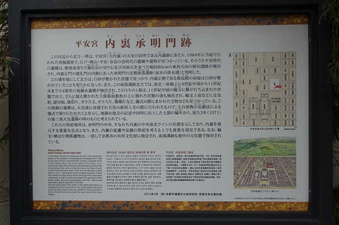 「平安宮内裏承明門跡」の石碑です。後ろに案内板もあります。