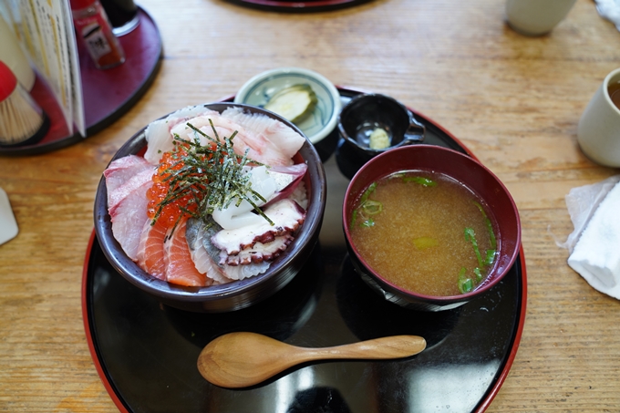 やっぱ、日本海はこれ! 「若狭小浜お魚センター」の「お刺身処五右衛門」で海鮮丼。少しお昼には早いのですが、昼前には長蛇の列になるので、早めの昼食です。待ち時間なしで食べられました。