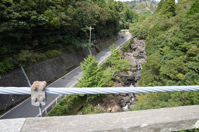で、気持ちよく峠道を登っていると、いきなり道の上に吊り橋がかかっているではありませんか。運転中なので写真は撮れませんでしたが、行き過ぎてしばらくすると道の右側に駐車場。