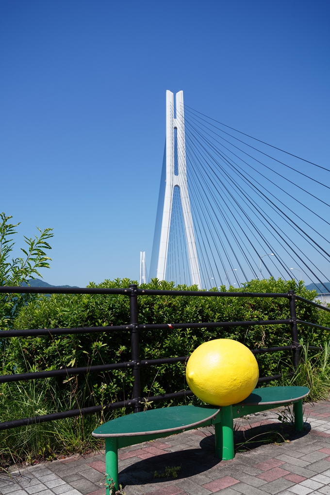 展望台に来ました。 生口島の特産品、レモンのオブジェです。