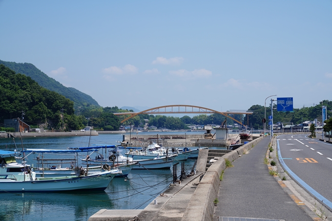 どんどん走っていると左側に見える「高根島」に渡る「高根大橋」が見えてきました。この先で道は右の方に曲がり、少し内陸の方に向かいます。
