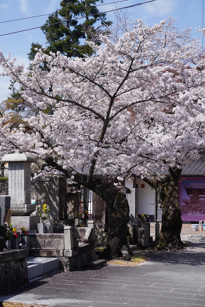 で、「岡崎神社前」から参道を上がってくると墓地前のソメイヨシノが満開です。