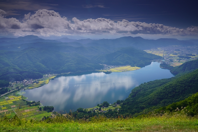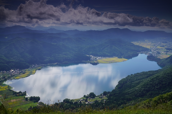 「織花」さんから少し走ったところに「木崎湖」という湖があるのですが、そこを見下ろせる「小熊山パラグライダー場」が良い景色だというので行ってみます。